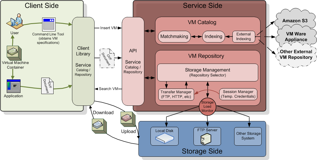 The VMRC is a client-server application deployed as a web service and a client-side API. The server requires an application server like Apache Tomcat and both the client and the server require Java (JRE or JDK). The following figure depicts the workflow involved in managing the VMIs.